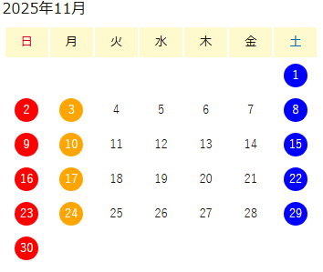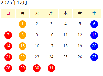 店舗休業日は変更となる場合がございます。随時、こちらでお知らせいたします。